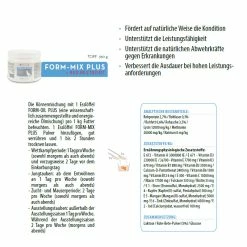 Vitamin A 11100 IE, Vitamin D3 1100 IE, Vitamin E 78 mg, E1 (Eisen) 97 mg, E2 (Jod) 2 mg, E4 (Kupfer) 10 mg, E5 (Mangan) 73 mg, E6 (Zink) 70 mg, E8 (Selen) 0,19 mg